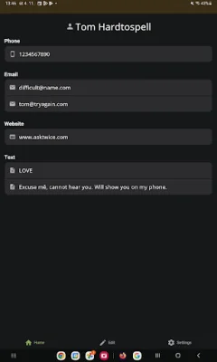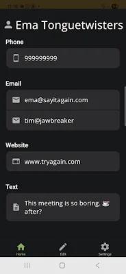 This application is designed to organize and display contact details in a user-friendly and efficient manner. The contact details are split into logical sections, making it easier for users to find and access the information they need. For example, an email address such as [email protected] is split by the @ sign, with each part displayed on a separate line. This allows for a more organized and visually appealing presentation of the contact information.