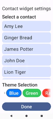 This application allows you to easily manage and access your contacts with just one tap. With a simple and user-friendly interface, you can quickly view and organize all of your contacts in one place. The main feature of this app is its customizable widget, which can be personalized with different themes and colors to suit your preferences and style.