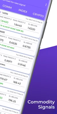 We offer a variety of signals for different markets, including FOREX, commodities, indices, and cryptocurrencies. Our analysts generate high-quality signals for popular scripts such as AUDCAD, EURUSD, XAUUSD, and BTCUSD. Each signal includes three take profits and a stop loss, giving you a clear idea of when to enter and exit a trade.