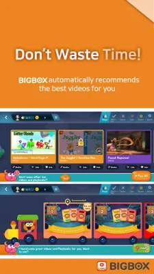 One of the main features of BIGBOX is its vast library of over 10,000 videos. These videos come from popular content providers and include a variety of options such as badanamu, pororo, Tobot, spookiz, and more. Additionally, there are 1,700 videos from Mcgraw-Hill and Readers series of Joy Cowley, as well as 7,400 YouTube videos specifically selected for students. However, some videos may be restricted in certain countries.