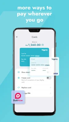BigPay offers a variety of payment options, making it convenient for you to pay anywhere you go. With instant transfers via DuitNow QR and international transfers, you can spend in multiple countries. The app also offers physical and virtual Visa cards, giving you limitless spending and saving options across the globe.