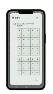 Bingo Card Generator also has a game history feature that automatically saves generated sets of cards. This makes it easy for users to access and reuse them for future games. Additionally, the app allows users to mark numbers and play along directly in the app. For a hands-free experience, users can upgrade to the premium version for automatic marking.