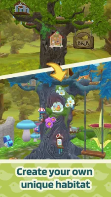 Get ready to unleash your creativity and love for cute animals with Bird B&B! This adorable game allows you to design and build your very own tree home, complete with a garden to grow food for your cute bird guests. As you care for your guests and earn 5 star ratings, you'll unlock more rooms and attract even more birds from all over the world. And for an extra dose of fun, you can switch to AR mode and see your virtual pet friends come to life in your own home!