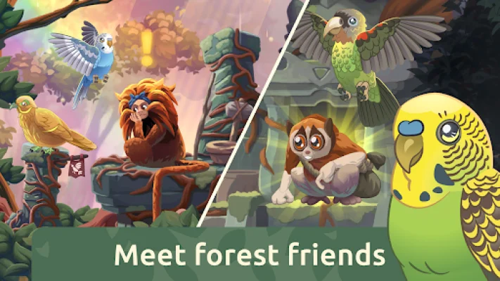 Start small and watch your bird sanctuary grow into a flourishing forest. Level up birds, collect feathers to summon new species, and complete missions and events to earn special rewards. Along the way, you'll also meet charming forest creatures.