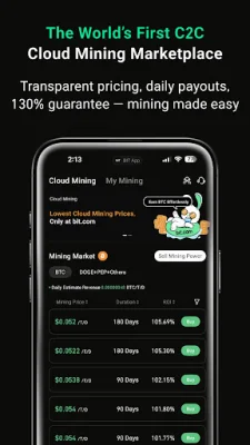 In addition to spot and perpetual trading, bit.com also offers a unique feature called C2C Cloud Mining. This allows users to invest in Bitcoin mining with low entry barriers, as miners can list their computing power and users can purchase it directly. This platform has transparent pricing and daily settlements, with no platform commission. Additionally, bit.com enforces fulfillment and offers a 130% compensation guarantee, making it a secure and cost-effective option for mining.