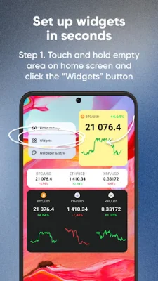 To use the Bitcoin & Crypto Price Widget on your Android device, simply follow these steps: 1) Download the app, 2) Choose your preferred cryptocurrency and customize the background and size, 3) Add the widget to your home screen by holding down on an empty area, 4) Click on the "Widgets" button, 5) Select the Bitcoin price widget, and 6) Build a smart crypto portfolio with top currencies like Bitcoin, Ethereum, Ripple, and Shiba.