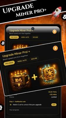 Experience the thrill of virtual mining with Bitcoin Miner Crypto Simulator. Increase your mining speed, unlock performance boosts, and watch your simulated Bitcoin balance grow over time. This app is perfect for those interested in learning about crypto mining in a safe and risk-free environment while having fun.