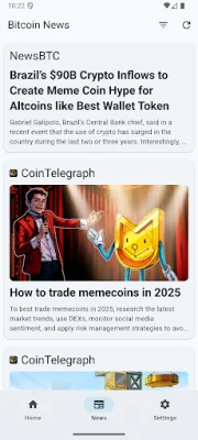 In addition to the news feed, the app also provides up-to-date conversion rates for Bitcoin to 10 major currencies, including USD, EUR, JPY, CNY, CHF, GBP, AUD, CAD, and INR. This allows you to easily track your portfolio's value no matter where you are in the world.