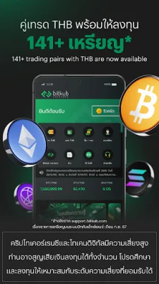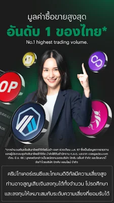 Join the millions of satisfied users and download the Bitkub app today. Based on digital asset trading volume and total downloads, Bitkub has established itself as the top choice for cryptocurrency trading in Thailand. However, it is important to note that investing in cryptocurrency and digital tokens involves high risks, and investors should carefully study information and make investments according to their own risk profile.