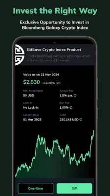 BitSave is a comprehensive application that offers a variety of crypto investment products to help you grow your wealth. These products include the Crypto Index Product, which tracks the Bloomberg Galaxy Crypto Index (BGCI), the Crypto & Gold Hybrid Product, which combines 70% crypto and 30% gold, and the Bitcoin Only Product, which is 100% invested in Bitcoin. With these options, BitSave caters to a diverse range of investment preferences and risk appetites.