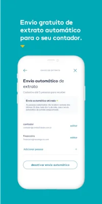 O app da Biz também é uma ótima ferramenta para organizar as contas da sua empresa. Com ele, é possível enviar automaticamente o extrato para o seu contador ou para quem você quiser, facilitando o controle financeiro.