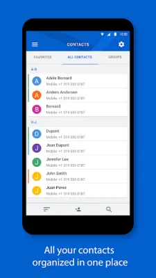 BlackBerry Hub+ Contacts is an application that allows users to seamlessly integrate their work and personal accounts for a more efficient and organized experience. It supports various email providers such as Gmail, Yahoo!, Office 365, and more, allowing users to access their local and synced contacts all in one place. Users can also remotely search their work directory address list directly from their device, making it easier to find and connect with colleagues.