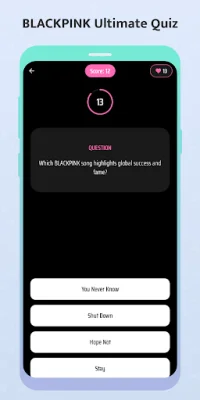 To play, you must answer multiple-choice questions about BLACKPINK within 15 seconds. There are no hints or help available, so only true fan knowledge will help you succeed. The game offers endless questions for endless fun.