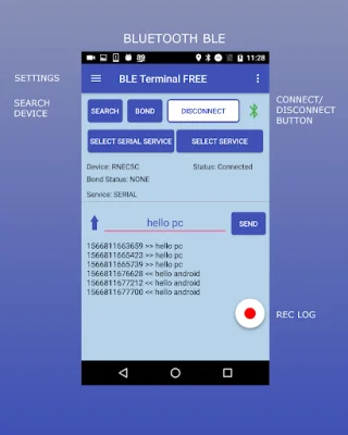 One of the main features of this app is the ability to save log sessions to a file. This can be useful for keeping track of data and analyzing it later on. It's important to note that this app only works with devices that have Bluetooth Low Energy capabilities, such as SimbleeBLE, Microchip, and Ublox.