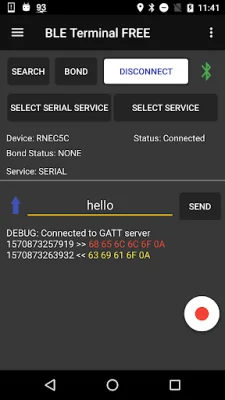 If necessary, you can also add Service/Characteristics by clicking on the "SELECT SERVICE" button. This allows for more customization and control over the data being transmitted and received. Finally, you can send and receive messages using the app.