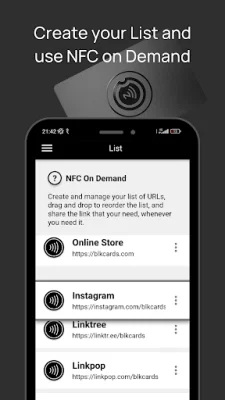 BLK CARDS also offers a unique "LIST" feature that allows you to manage your contactless digital NFC business card. You can create and save an unlimited list of URLs and choose which ones you want to share at any given moment, depending on the situation. This makes it perfect for both business and personal use.