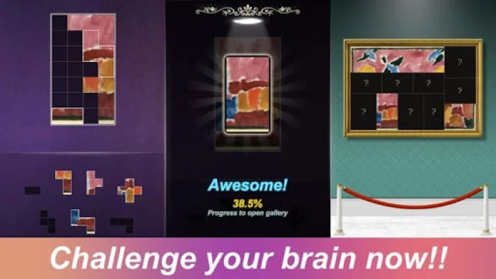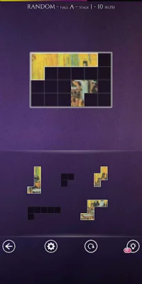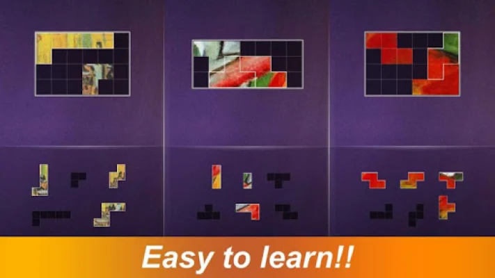 This application is a puzzle game where the player's objective is to arrange blocks in a grid frame. The blocks cannot be rotated and there is no time limit, allowing players to take their time and strategize their moves. The game also features special functions such as a hint function and the ability to reset all puzzles.