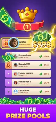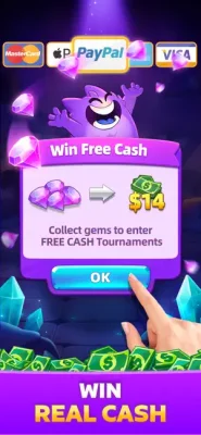 The app also offers various fun features, such as playing free games to win real cash using gems, participating in multiplayer tournaments with 5-10 other players, and competing in mini-games like Scratchers and Dice Cruise for extra rewards and money.