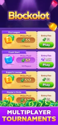 Blockolot: Win Real Cash is a free gaming application that offers players the chance to compete in diverse tournaments and win real money prizes. The platform is built on skill-based competition, ensuring a secure and fair gaming experience for all players. The game itself is a simple block puzzle, but it takes skill and strategy to become a champion.