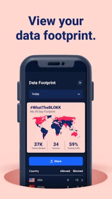 With BLOKK, you have the power to manually block or unblock specific trackers, giving you control over what is being blocked. You can also view a global map of your data and geo-block certain countries, allowing you to decide where your data goes. Additionally, BLOKK keeps a history of your blocking and phone activity for up to 30 days, giving you a comprehensive view of your usage.