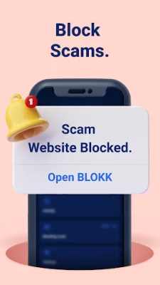 BLOKK is a mobile application that provides users with protection against trackers and scam websites. It works by using a VPN connection on your device to block these harmful elements, ensuring your privacy and security while using your phone. With BLOKK, you can easily track and manage the number of trackers that have been blocked from your most recently used apps, as well as receive instant warnings if you visit a known scam or harmful website.