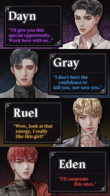Among the four seductive vampire ikemen, each with their own hidden past and desires, you will encounter Dayn, the ruthless CEO with a dark secret, Gray, the conflicted coworker who sees himself as a monster, Ruel, a vampire with a mysterious lineage, and Eden, Dayn's loyal right-hand man. You will also meet Dana, a vampire secretary who despises humans.