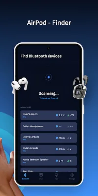 Bluetooth Finder is a must-have app for anyone who owns Bluetooth devices. With its key features, it makes finding your misplaced devices effortless. Whether it's your AirPods, headphones, or smartwatch, this app acts as your personal tech detective, helping you locate your lost items in seconds. One of the standout features of Bluetooth Finder is its ability to find AirPods. No more stressing over misplaced AirPods or their case, as this app makes it easy to locate them. It also works for other wireless earbuds and headphones, ensuring you never lose them again. Using the Bluetooth Scanner, you can efficiently detect and track nearby Bluetooth devices. The signal strength indicators guide you closer to your lost item, making the search process quick and easy. This feature is not limited to just headphones and earbuds, as it can also help you find your Apple Watch or other smartwatches. To use the app, simply tap 'Search Devices' and start scanning for nearby Bluetooth devices. Once your device is found, follow the signal strength and use the "red hot zone" to close in on your lost item. With Bluetooth Finder, you can find your lost items within minutes. Bluetooth Finder supports a wide range of Bluetooth-enabled devices, including AirPods, headphones, smartwatches, and even hearing aids. This makes it a versatile app that can help you find any Bluetooth-connected device. One of the reasons to choose Bluetooth Finder is its quick and easy process. With just a few taps, you can locate your lost items, saving you time and stress. It's perfect for Apple users, as it can help find AirPods even when they're out of the case. It's important to note that Bluetooth Finder is not affiliated with or endorsed by any third-party companies. It is independently developed to help users find their Bluetooth-connected devices efficiently. So if you're tired of constantly misplacing your Bluetooth devices, download Bluetooth Finder now and never lose them again!