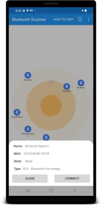 This application is designed to assist users in scanning for Bluetooth devices in their surroundings. It provides a convenient way to view detailed information about these devices and easily connect to them. This can be useful for a variety of purposes, such as connecting to wireless headphones or speakers, transferring files between devices, or controlling smart home devices.