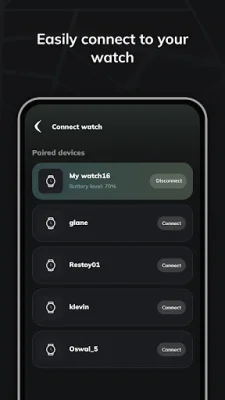 The main feature of this application is its ability to connect and manage your Wear OS smartwatch with your phone. This is done through the "Connect Watch" feature, which allows for a quick and seamless connection between the two devices. This ensures that your Wear OS devices stay connected without any interruptions, making it easier for you to access and use your smartwatch.