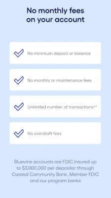 Bluevine prioritizes the security of your account, with FDIC insurance up to $3,000,000 per depositor through Coastal Community Bank, Member FDIC and their program banks. They also have industry-leading security protocols in place, such as the ability to instantly lock your debit card if it is lost or misplaced.