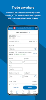 For InvestorLine Self-Directed and adviceDirect clients, the app allows for quick and easy trading of stocks, ETFs, and mutual funds. adviceDirect clients also have the added benefit of personalized buy and sell recommendations and 24/7 account monitoring. Nesbitt Burns clients can sign up to view statements, tax documents, and trade confirmations online and choose to receive email alerts when new documents are available.