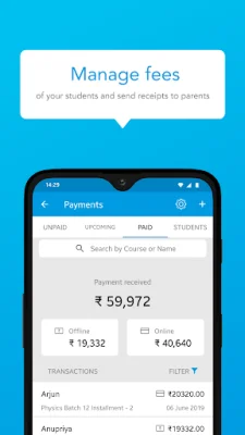 Our app also offers reminders and notifications for batches and sessions, so you never have to worry about missing a class or session. And for parents, our app allows them to track their child's performance and easily communicate with teachers for any queries.