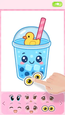 In addition to coloring pre-made pages, the app also offers blank pages for children to learn how to draw their own boba tea, cups, sweets, and characters from scratch. This feature helps kids be creative, relax, and practice their drawing skills in a fun and engaging way.