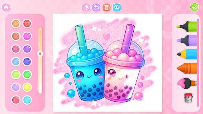 With a wide range of cute boba tea and bubble tea cups, rainbow milk tea and iced drinks, colorful popsicles, smoothies, and juices, as well as fun drink toppings like pearls, jelly, fruit pieces, and ice cubes, there's no shortage of things to color in this app. And with a simple, kid-friendly interface, it's perfect for young artists to use on their own.