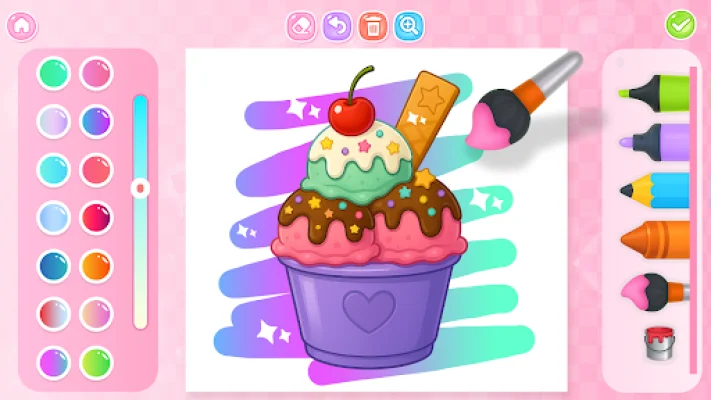 All drawings can be saved to the gallery and shared with friends and family. The app also offers helpful tools such as undo/redo, eraser, and zoom, making it easy for kids to color carefully and fix any mistakes while they paint, doodle, and draw.