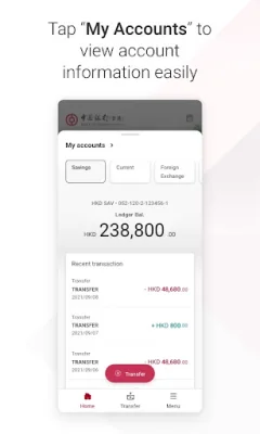 Transferring money has never been easier with the "Transfer" function. Users can transfer funds with ease and even notify the payee instantly. The application also offers a one-stop FX service with its "Easy FX" feature, providing streaming FX rates, banknotes reservation, and an FX calculator at your fingertips.