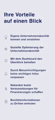 Insgesamt ist die Bonitätsmanager-App ein unverzichtbares Tool für Unternehmer, die ihre Bonität verstehen und optimieren möchten. Mit ihren zahlreichen Funktionen und der hohen Datensicherheit ist sie eine zuverlässige Unterstützung für den Erfolg Ihres Unternehmens.