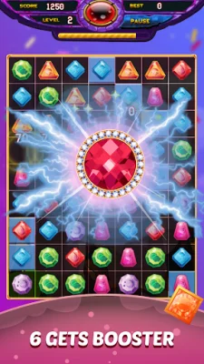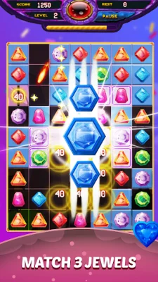This application is a fun and challenging game that involves matching jewels of the same shape and color. The goal is to swipe and match three jewels in a row or column to clear them from the board. Players can also switch one jewel to create a match. For those who need help, there are wiggly jewels that can provide hints. Clearing multiple triplets at once will earn players even more points.