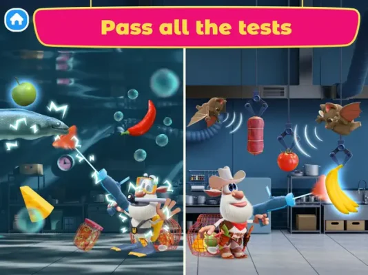 As a contestant, you will face a variety of challenges such as the Conveyor Belt, where you must use your hand to cut vegetables and fruits while avoiding trash. In Fruit Ninja, you must slice flying food without hitting muffin bombs. The Defrosting challenge requires you to smash ice cubes to reveal the products inside, with Booba's help of course. In Grater, you must grate falling food with an electric grater while staying focused. And in Greens Harvesting, you must tap sprouts to collect leaves for garnishing, all while avoiding a pesky worm.