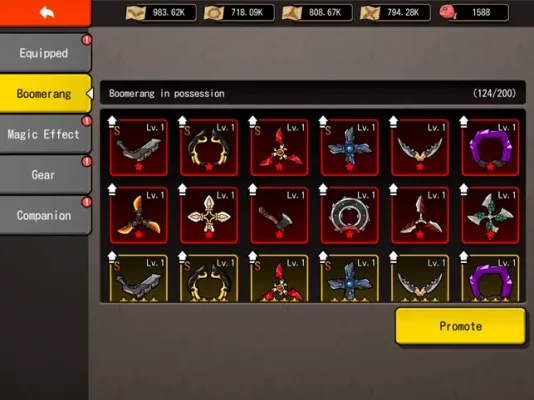 But that's not all, as you progress in the game, you will have the opportunity to collect and enhance different types of boomerangs. Each boomerang has its unique abilities and strengths, so choose wisely and experiment to find the perfect one for your playstyle. You can also equip your boomerang with various magic effects, making it even more powerful and deadly against the demons.