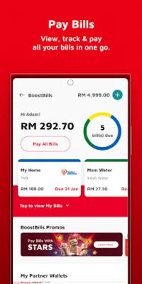 Another convenient feature of Boost is the ability to pay bills directly through the app. Users can easily settle their postpaid, internet, electricity, water, and TV bills using the AutoBills, MultiBills, and ViewBills features. These features allow for auto-recurring payments, paying multiple bills at once, and viewing consolidated payment information. Users can also earn Boost Stars for every Ringgit spent on bill payments, which can be used for instant discounts on future bills.