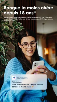 BoursoBank est un service gratuit pour les clients BoursoBank et vous pourrez bénéficier d'une assistance technique en cas de besoin. Pour toute suggestion ou commentaire, vous pouvez nous contacter par email ou directement depuis l'application. Veuillez noter que certains services sont soumis à l'acceptation de BoursoBank et que des conditions peuvent s'appliquer.