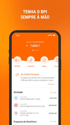 A aplicação BPI é uma ferramenta moderna e funcional que permite aos clientes do banco consultar e gerir suas contas, cartões e poupanças de forma simples e direta no dia-a-dia. Com um novo design, a aplicação oferece acesso rápido e fácil às principais operações bancárias, incluindo consultas de saldos e movimentos, transferências e pagamentos, gestão de cartões, poupança e investimento, crédito e organização financeira.
