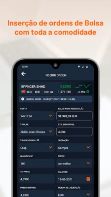 A aplicação também oferece recursos para negociação e realização de ordens de compra e venda de títulos. É possível realizar negociações de forma rápida e consultar informações importantes sobre os títulos, como custos e encargos e regras de negociação. Além disso, é possível obter comprovantes das ordens enviadas e consultar todas as ordens realizadas e as ordens ativas, com acesso aos eventos de cada uma delas. Também é possível realizar ordens Trailing Stop na Euronext.