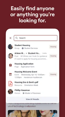 One of the main features of BPU Community is its search function, which allows users to search for staff, peers, systems, groups, posts, and resources. This makes it easy to connect with departments, services, organizations, and peers within the university community. Users can also stay focused on their most important tasks by using the app's to-do list feature.