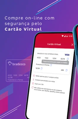 O aplicativo está disponível para clientes com cartões de crédito Bradesco e Bradescard ativos, sujeito a tarifas e condições. O cadastro não está disponível para alguns cartões específicos, como Cencosud, Lojas Colombo, Luigi Bertolli, CompCard, Casas Bahia e COOP.