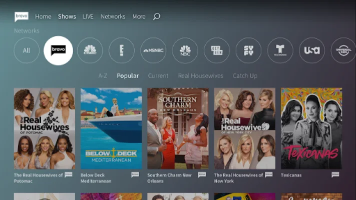 In addition to Bravo content, the app also provides access to on-demand content from other NBCUniversal networks, such as NBC, E!, USA, SYFY, Oxygen, MSNBC, CNBC, Universal Kids, Universo, and Telemundo. Users can live stream these networks within the app and browse a dedicated page for each network showcasing the hottest series. The app also offers a catalog of recent and throwback favorites to watch, with the ability to filter shows by network and genre.