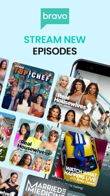 The Bravo app features popular shows such as Real Housewives of Atlanta, Real Housewives of Beverly Hills, Top Chef, and Below Deck Mediterranean. Users can stream full episodes for free, watch new episodes the day after they air on TV, and live stream shows like Below Deck and Watch What Happens Live.