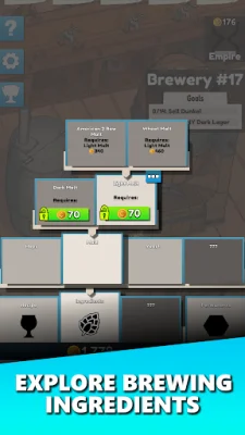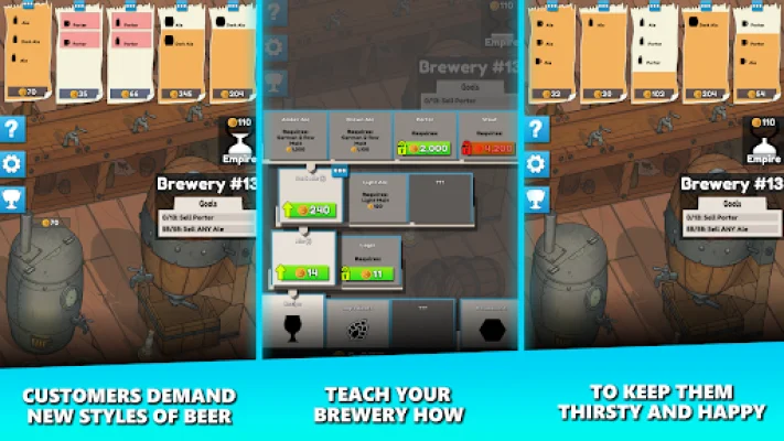 The game is a combination of an idle game and a management simulation. Players must continuously learn new recipes to keep their customers satisfied and find ways to improve the quality of their beer to increase profits. As your brewery grows, you will also have the opportunity to learn real brewing knowledge, such as the process of fermentation, malt selection, yeast cultivation, and adding hops to your mash boil.