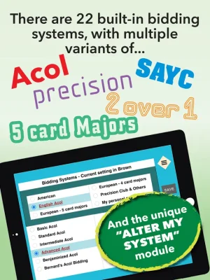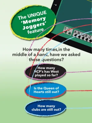 BridgeAce also stands out for its unique 'Memory Joggers' feature, which helps players remember important details about the hand they are playing. This feature is available in all modes and is especially useful for players who may experience 'senior moments.' Additionally, the app offers 22 built-in bidding systems, which can be fully customized and redesigned using the 'Alter My System' tool.